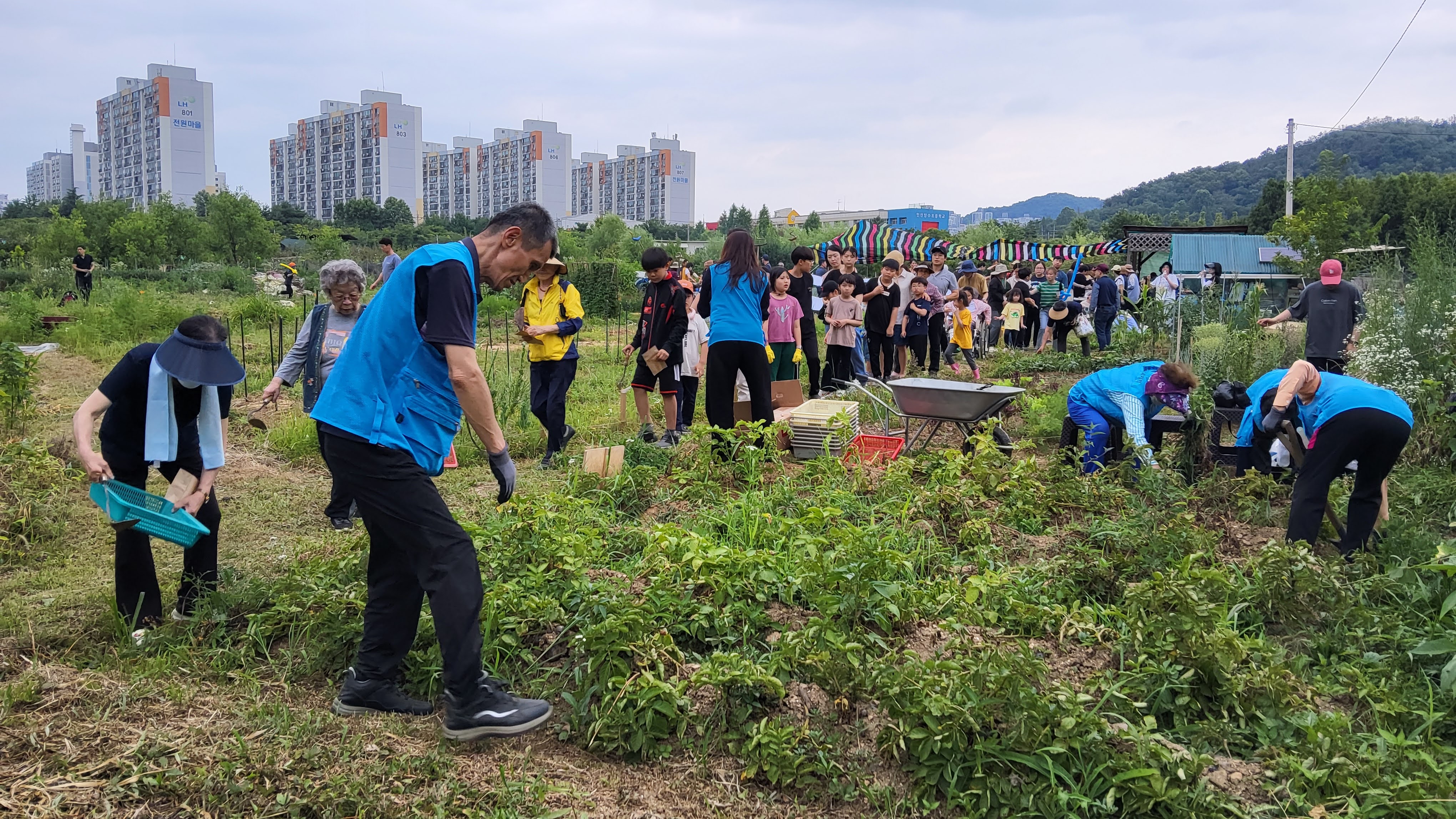 어르신분들과 어린 아이들, 가족단위로 참여하신 분들도 많으셨는데요. 저 멀리 세종에서 오신 분까지 어느새 100여명이 넘는 사람들이 만수마을이음텃밭에 옹기종기 모였습니다.